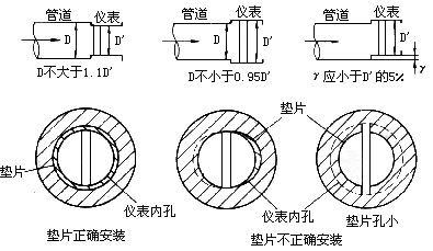3) 密封墊不能凸入管道內(nèi),其內(nèi)徑可比傳感器內(nèi)徑大1~2mm。