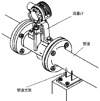 5) 減小振動對VSF的影響應(yīng)該作為VSF現(xiàn)場安裝的一個突出問題來關(guān)注。首先在選擇傳感器安裝場所時盡量注意避開振動源。其次采用彈性軟管連接在小口徑中可以考慮。第三,加裝管道支撐物是有效的減振方法,一種管道支撐方法如圖20所示。