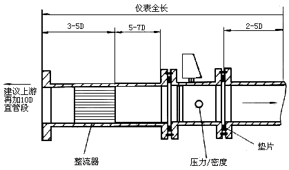 成套安裝,包括前后直管段,流動調(diào)整器等是保證獲得高精確度測量的一個措施,特別這些裝配在制造廠進行更能保證安裝的質(zhì)量,圖21所示為一安裝實例。
