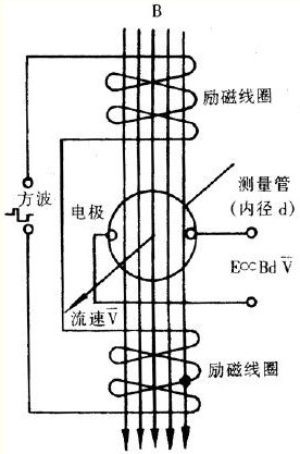 電磁流量計測量原理乃基于法拉第電磁 感應定律。流量計的測量管是一內襯絕緣材料的非導磁合金短管。兩只電極沿管徑方向穿通管壁固定的在測量管上,其電極頭與襯里內表面基本齊平。勵磁線圈 向方波脈沖勵磁時,將在與測量管軸線垂直的方向上產生一磁通量密度為 B 的工作磁場。此時,如果具有一定電導率的流體流經測量管,將切割磁力線感應 出電動勢 E。電動勢 E 正比于磁通量密度 B、測量管內徑 d 與平均流速 V 的乘積控制工程網版權所有 ,電動勢 E(流量信號)由電極檢出并通過電纜送至轉換器。轉換器將流量信號放大處理后,可顯示流量、總量,并能輸出脈沖、模擬電流等信號,用于流量的控制或調節。