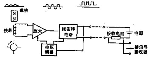 前置放大器由磁電感應轉換器與放大整形電路兩部分組成,示意圖見圖3-4所示。