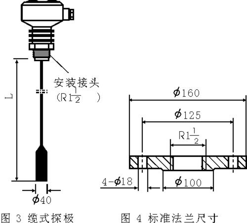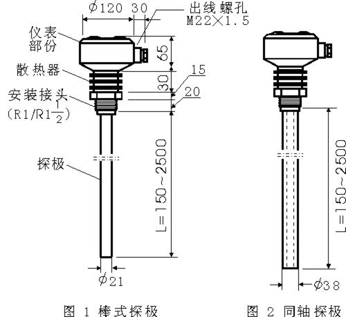 1. 本界面變送器探極長度可根據(jù)現(xiàn)場需要選擇,應稍短于料倉高度;小于2.5米時應選用棒式