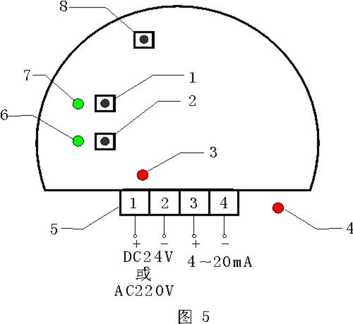 4. 用手握住探極不放,同時按下“滿倉鍵”至“滿倉標定指示燈”變長亮。此時輸出電流約為