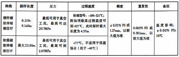 表1 硬桿磁致伸縮液位計和軟纜磁致伸縮液位計的主要參數(shù)