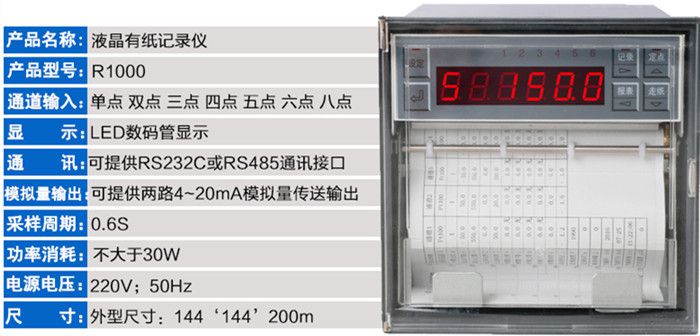 LK-R1000有紙記錄儀8路萬能輸入液晶顯示有紙記錄儀,可輸入標準電流、標準電壓、熱電偶、熱電阻等多種信號。具有傳感器配電輸出、繼電器報警輸出功能;采用高精度熱敏打印機,實現數據、曲線和混合打印;具有高清晰OLED液晶顯示功能;獨立的紙倉設計,使打印紙安裝方便快捷。