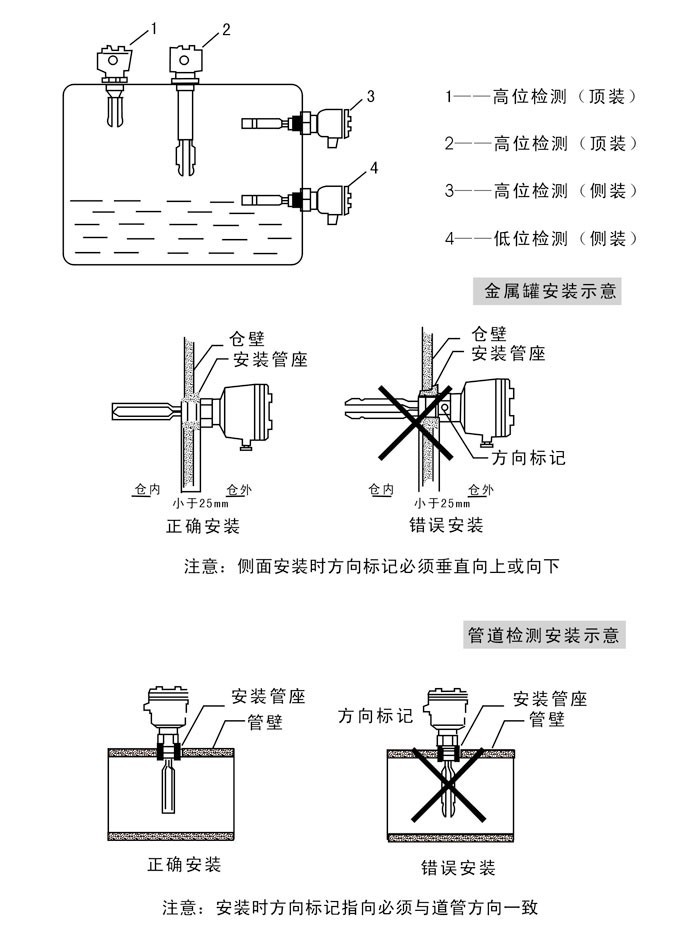 音叉物位開(kāi)關(guān)安裝要求: