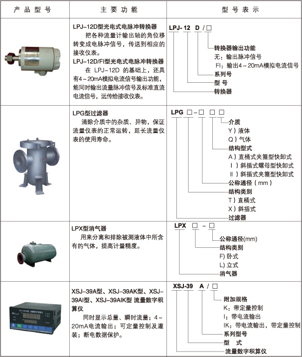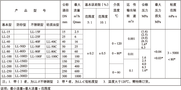 四、由選定的公稱通徑、基本誤差值(等級精度)和公稱壓力,按照“選型編碼”的內容,選定流量計型號。