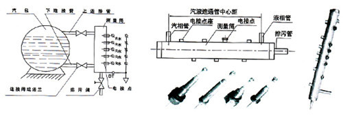 LK-UDZ系列電接點液位計主要用于鍋爐汽包、高低加熱器、除氧器、蒸發器、直流鍋爐 起動分離器、水箱等的水位測量。本裝置由測量筒和二次儀表組成,采用數碼顯示和汽紅、水綠雙色發光二極管顯示液位。測量筒的電極在水中對筒體的阻抗小,在汽中對筒體的阻抗大。 隨著水位的變化,電極在水中的數量產生變化,轉換成電阻值的變化,傳送到二次儀表,從而實現水位的顯示、 報警、保護聯鎖等功能。